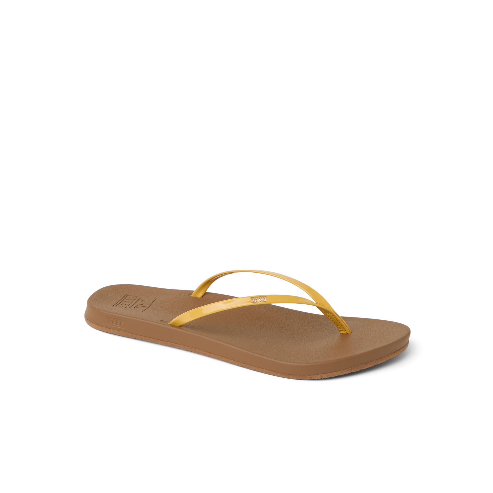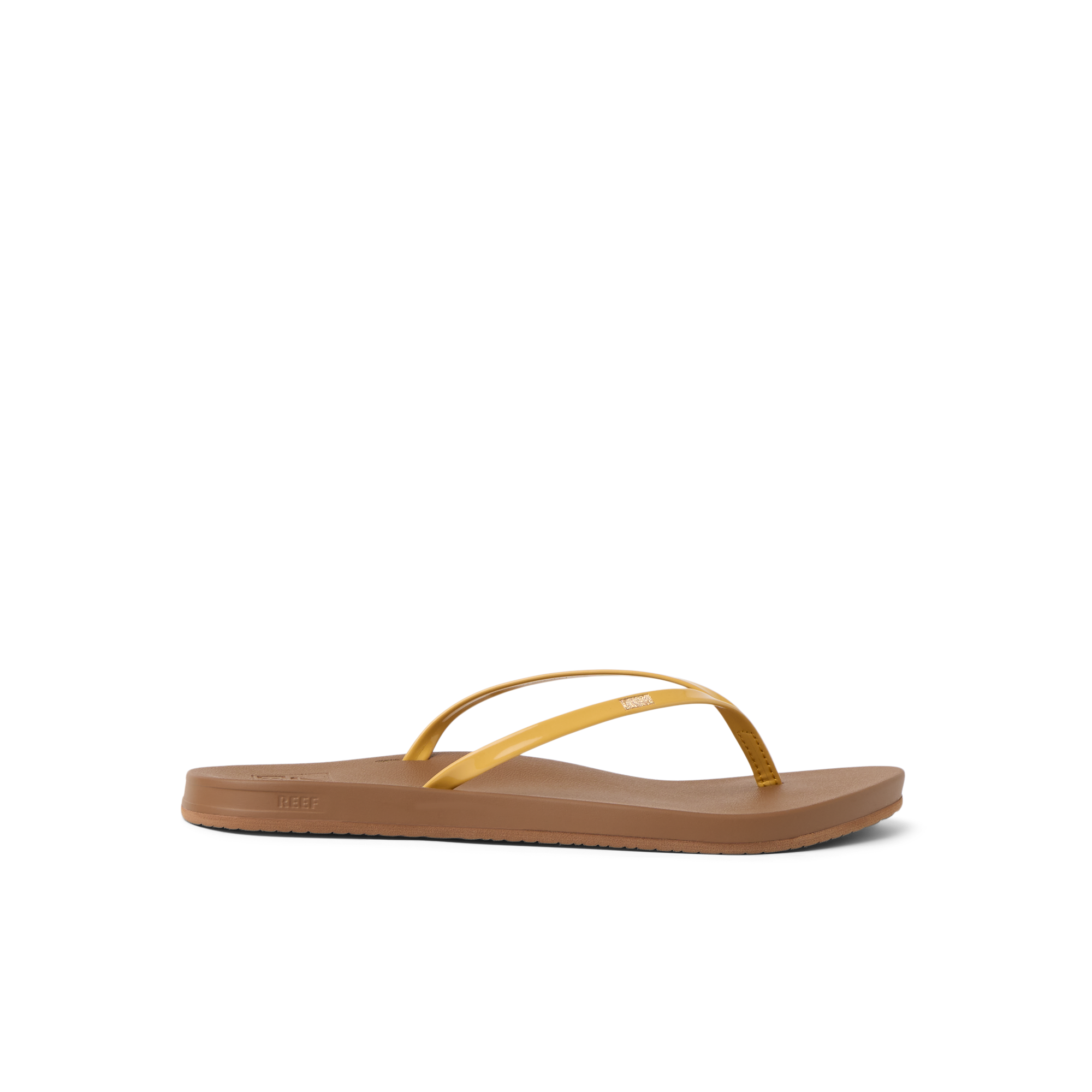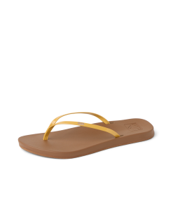 A delicate embroidered gold detail and slim straps transform our classic Cushion Slim flip flops. Just as comfy, a touch more chic. With a vegan leather strap, high energy rebound footbed and anatomical arch support.