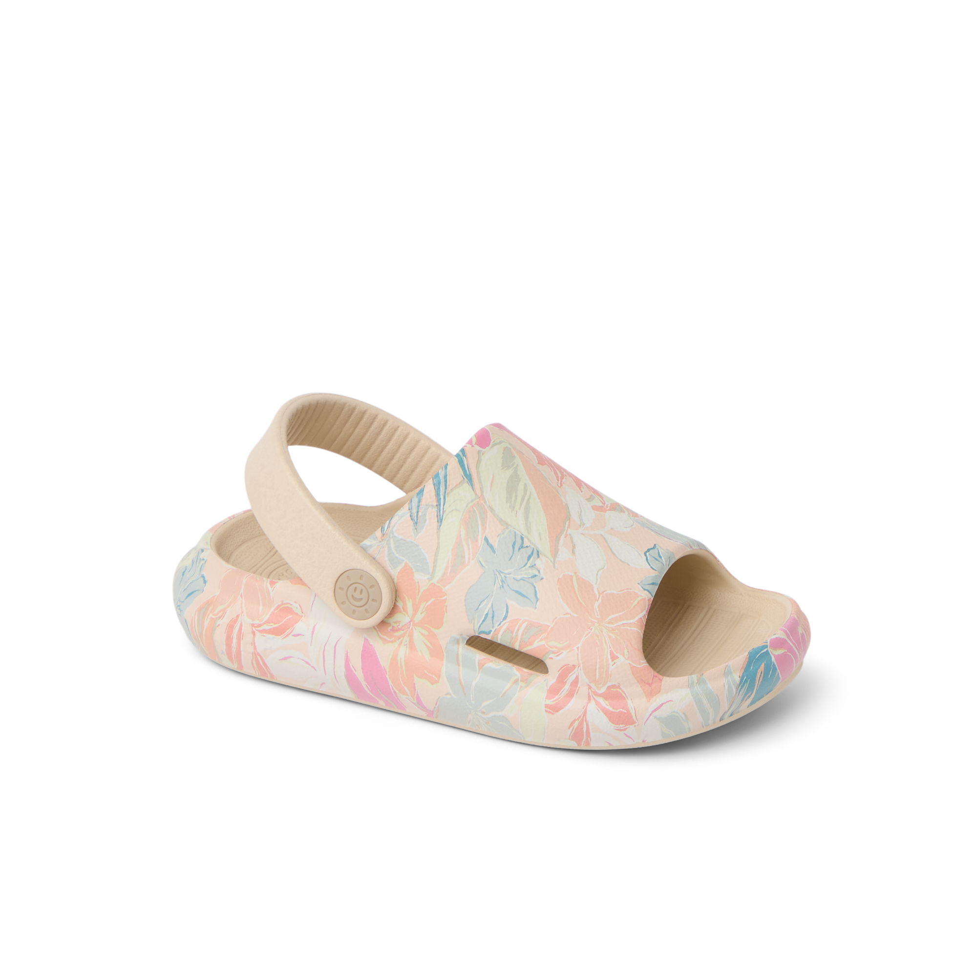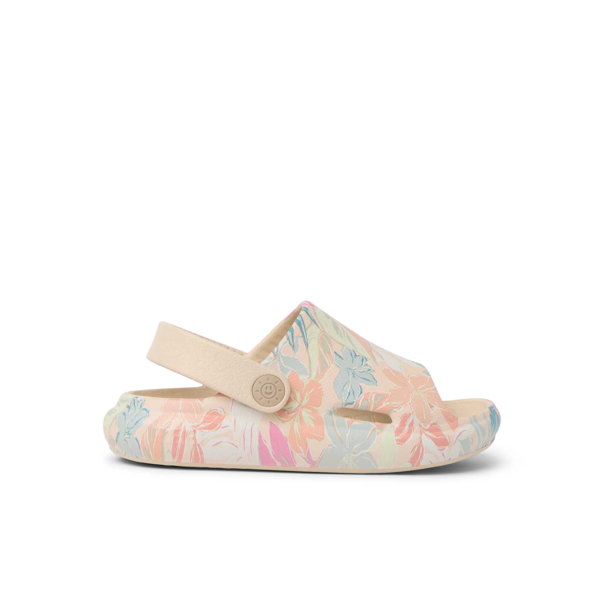 Super lightweight and ready for fun. The Little Rio Slide is designed with injected EVA that can be worn in and out of the water. Finished with a convertible strap and sunny embossed detail.